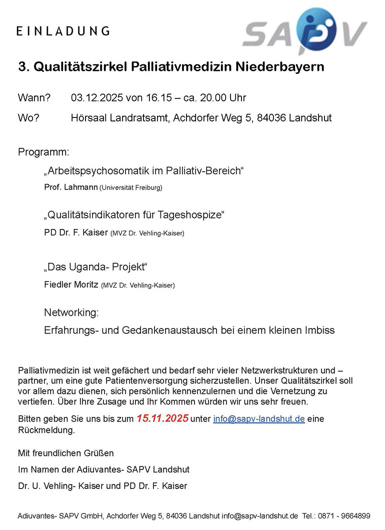 © Adiuvantes-SAPV GmbH · Achdorfer Weg 5 · 84036 Landshut · Telefon 0871 966 48 99